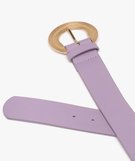 Sublime ceinture femme qui mixe une large lanière en matière synthétique imitation cuir finement grainé et une grosse boucle fantaisie en métal doré ciselé. Un accessoire féminin et audacieux, idéal pour marquer la taille d'une robe, d'une chemise ample ou d'une veste ! Déclinée dans des couleurs douces et lumineuses, c'est la ceinture parfaite pour les looks des beaux jours.