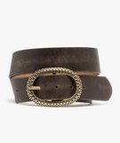 Ceinture large aspect patiné à large boucle fantaisie femme noir