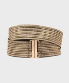 Pensée comme un véritable bijou, cette ceinture femme large transforme instantanément une tenue simple en look ultra sophistiqué. Sa base élastiquée épouse confortablement la taille tout en la mettant en valeur. L’alternance de rayures horizontales sublimées par du fil doré apporte une touche résolument glamour. La boucle en métal doré à clipser est à la fois pratique et élégante.