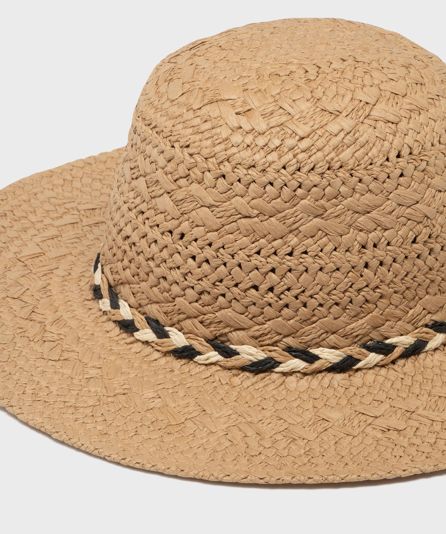 Chapeau capeline en paille de papier tressé femme beige