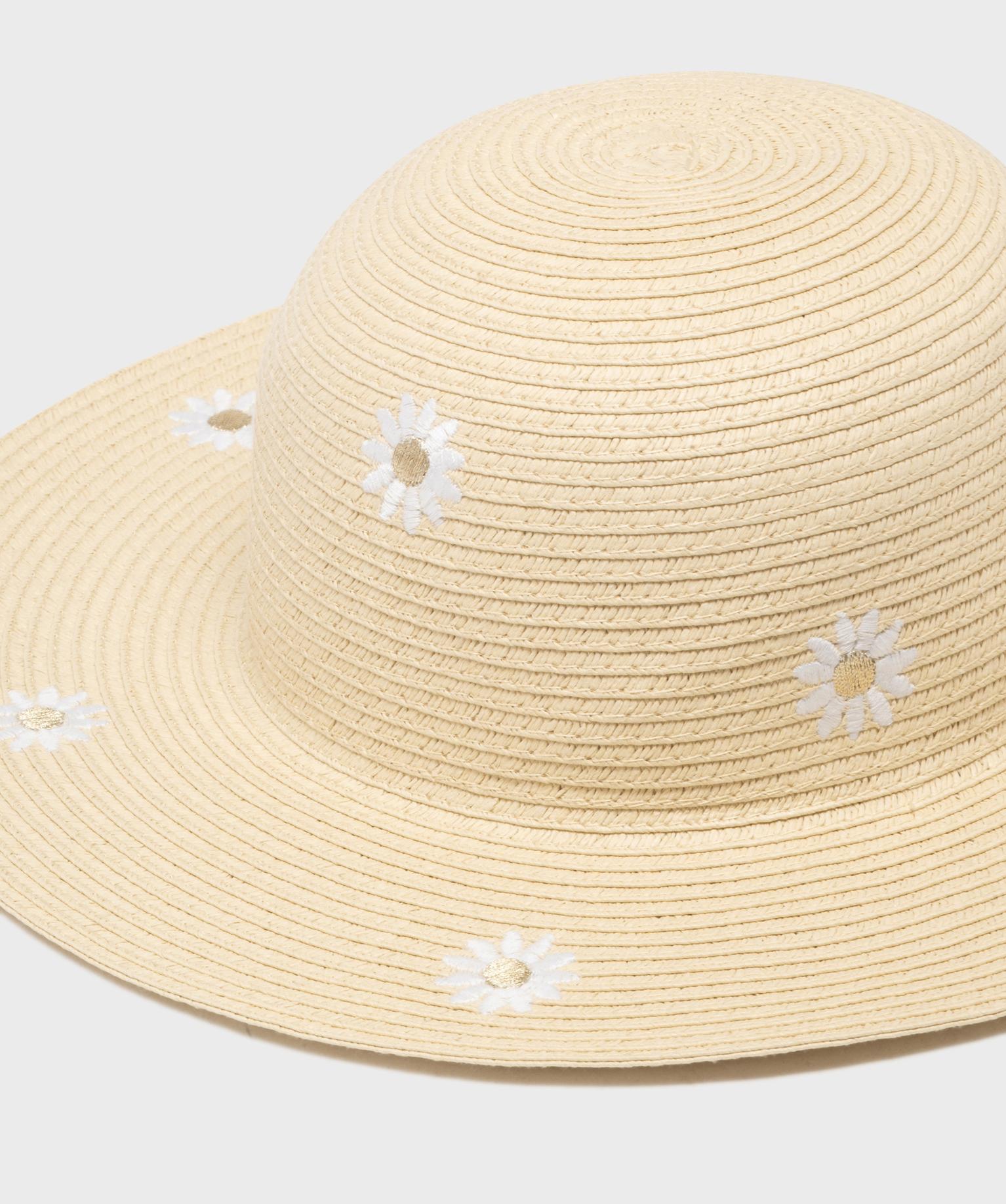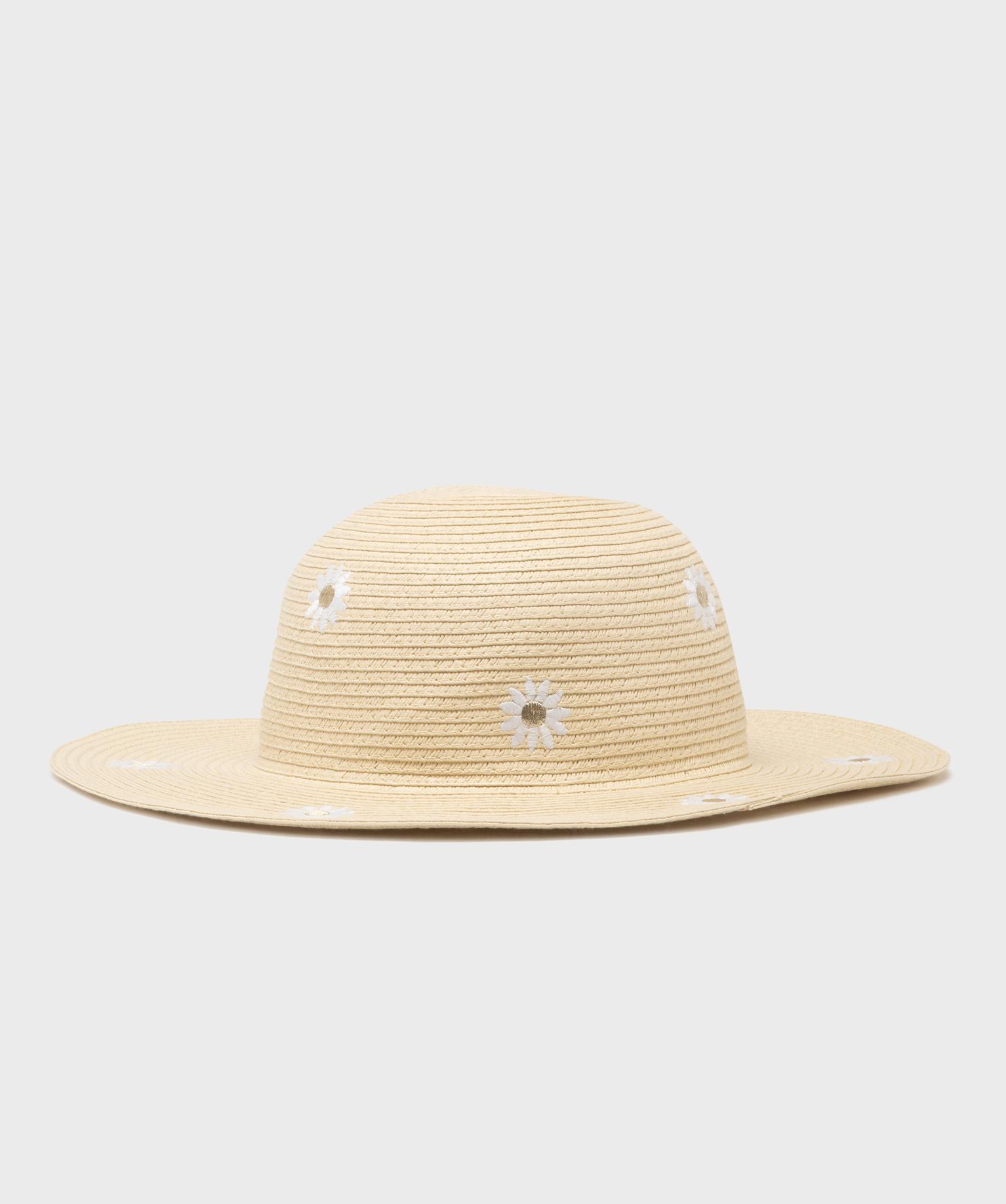 Chapeau de paille avec fleurs brodées fille beige clair