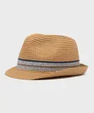 Chapeau de paille avec tresses colorées garçon beige