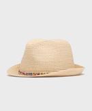 Chapeau de paille trilby avec rubans de perles femme beige clair