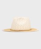 Chapeau en paille de papier incrusté de fil métallisé femme beige clair