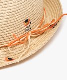 Chapeau fille en paille avec broderies fleuries beige clair