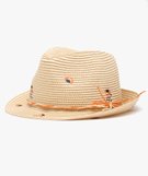 Ce joli chapeau de paille permettra de protéger efficacement les enfants contre les rayons du soleil tout en apportant une belle touche de style à leur look. Un chapeau fille confectionné en paille de papier, parsemé de jolies broderies fleuries. Il possède à sa base deux cordons de raphia de couleurs différentes. Un chapeau Trilby dont le bord est légèrement relevé sur l’arrière. Bande de propreté intérieure.