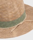 Pour vous protéger du soleil avec chic et décontraction, adoptez ce charmant chapeau fedora en maille tissée incrustée de fil doré. Un chapeau femme avec bande de couleur contrastante mise en relief par une cordelette tressée et nouée. Un accessoire facile à assortir, parfait pour ajouter une touche folk décontractée aux tenues estivales.