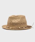 Chapeau trilby en paille de papier ajourée femme beige
