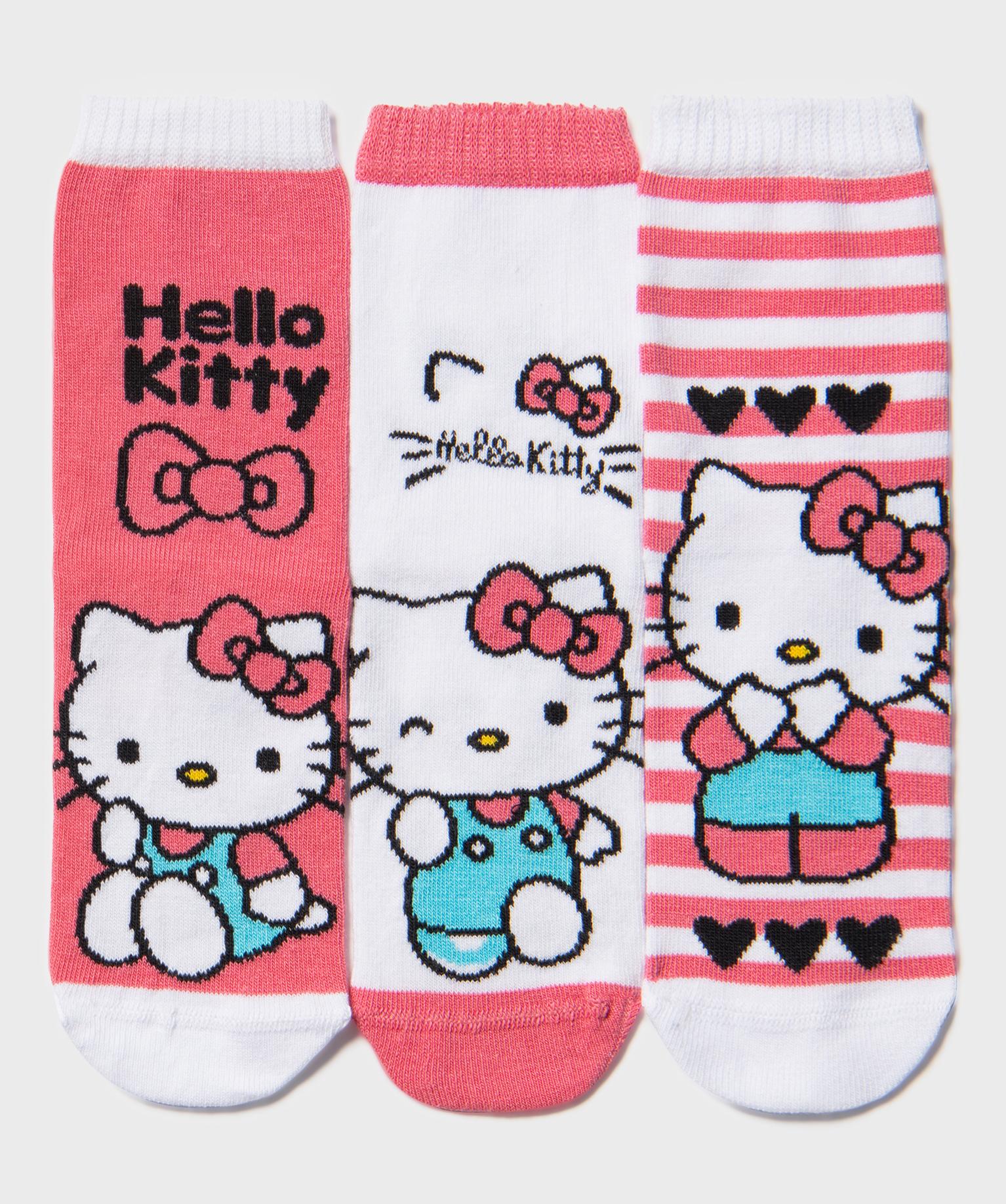 Chaussettes à motif chat fille (lot de 3) - Hello Kitty rose