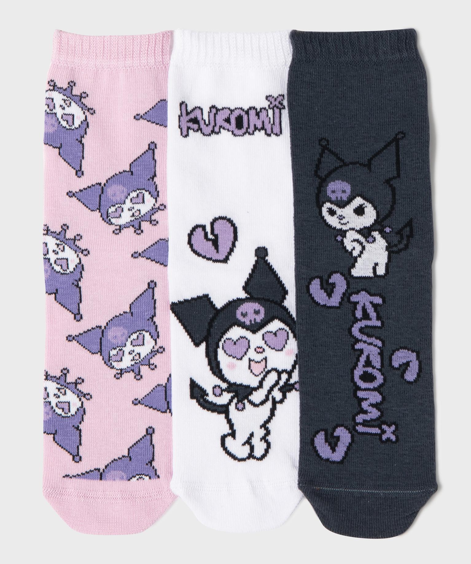 Ce lot de 3 paires de chaussettes Hello Kitty and friends ajoutera une jolie touche girly aux looks des filles. Des chaussettes courtes ornées des adorables personnages de la célèbre série, qui raviront les jeunes fashionistas. Ces chaussettes fille sont majoritairement confectionnées en coton et dotées de finitions renforcées sur le bout du pied, d'un talon à gousset et d’un élastique doux en haut de la tige.