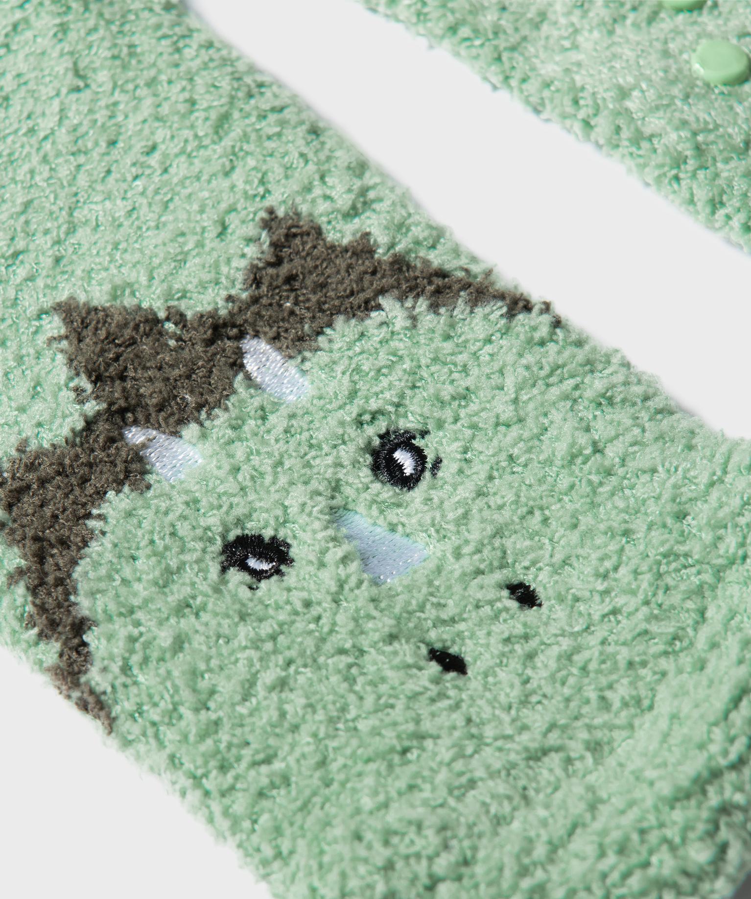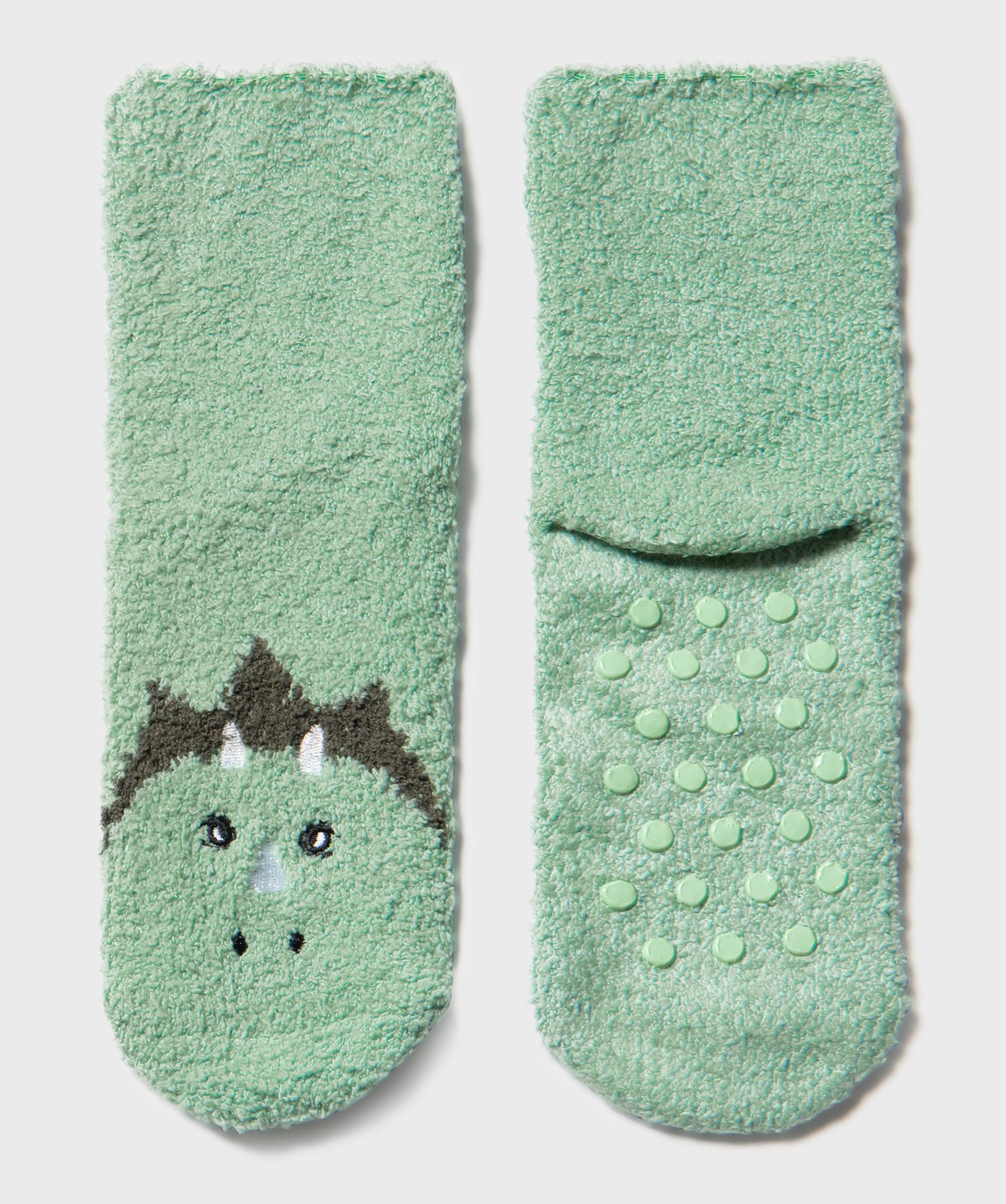 Chaussettes antidérapantes avec motif dinosaure garçon vert