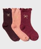 Chaussettes avec motif noeud et finitions froncées bébé fille (lot de 3) rose