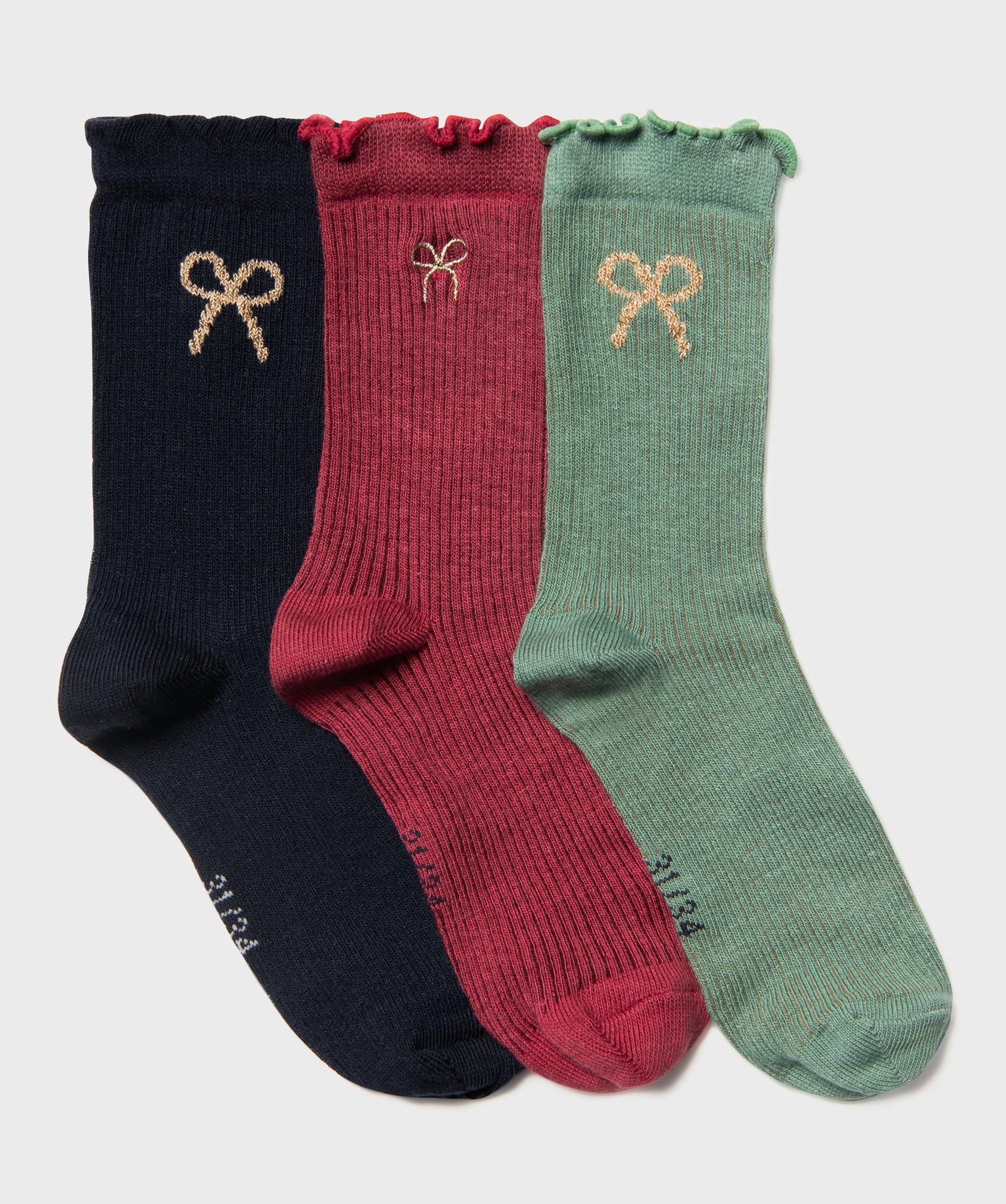Chaussettes avec motif noeud et finitions froncées fille (lot de 3) rose fonce