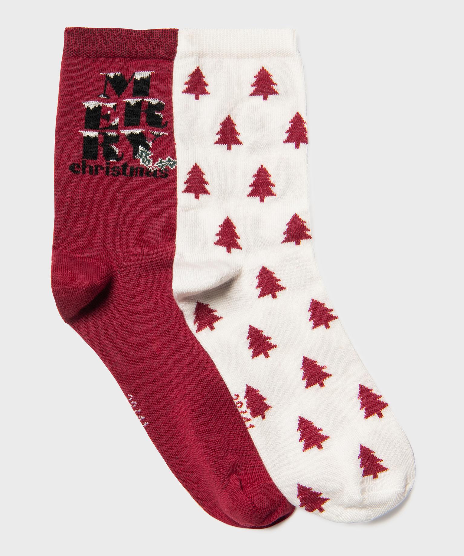 Chaussettes avec motifs de Noël femme (lot de 2) rouge