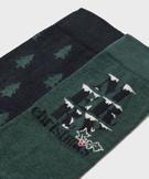 Ajoutez une touche de fun à vos looks de fin d’année avec ces chaussettes homme aux couleurs de Noël ornées de motifs festifs ! Un lot de 2 paires de chaussettes de Noël arborant des petits sapins sur une paire et une inscription « Merry Christmas » sur l’autre. Des chaussettes élégantes à porter avec un jean, un chino et même avec un pantalon de costume !