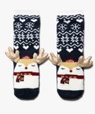 Chaussettes d’intérieur spéciales Noël avec cornes en relief fille bleu