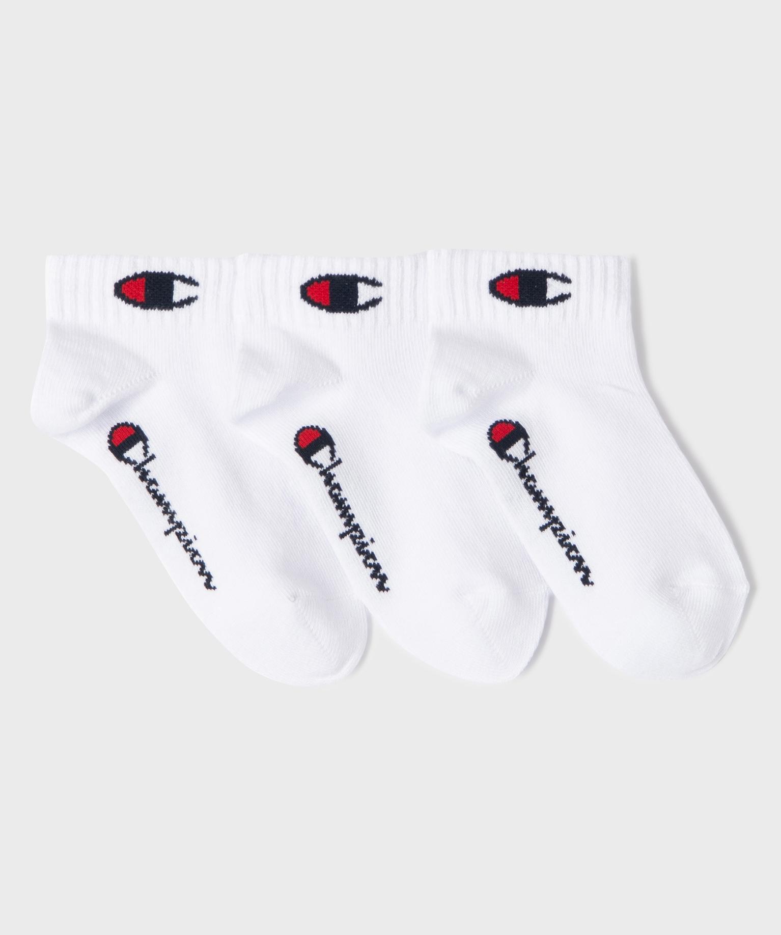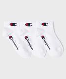 Lot de 3 paires de chaussettes de sport pour fille. Des chaussettes à tige basse idéales pour offrir un maximum de confort dans les baskets au quotidien, en cours d'EPS ou aux entrainements. Les chaussettes courtes Champion sont ornées du logo en haut de la tige et du nom de la marque sur le côté externe du pied. Confectionnées principalement en coton, ces chaussettes assurent une respirabilité et beaucoup de confort. Bord-côte élastique épais en haut de la tige.