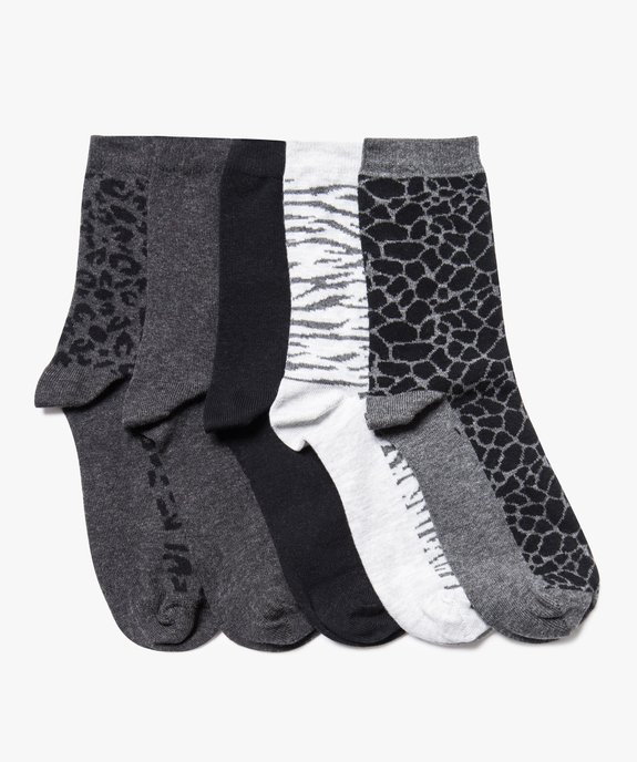 Chaussettes tige haute motif animalier femme (lot de 5 paires) gris fonce