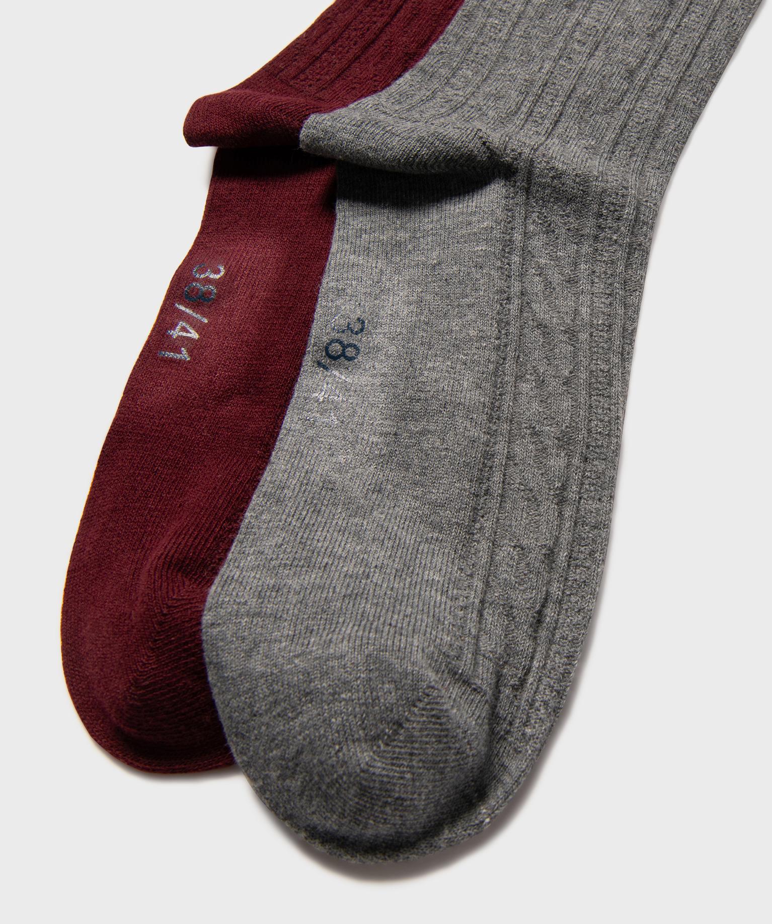 Chaussettes hautes en coton fin torsadé femme (lot de 2) rouge fonce