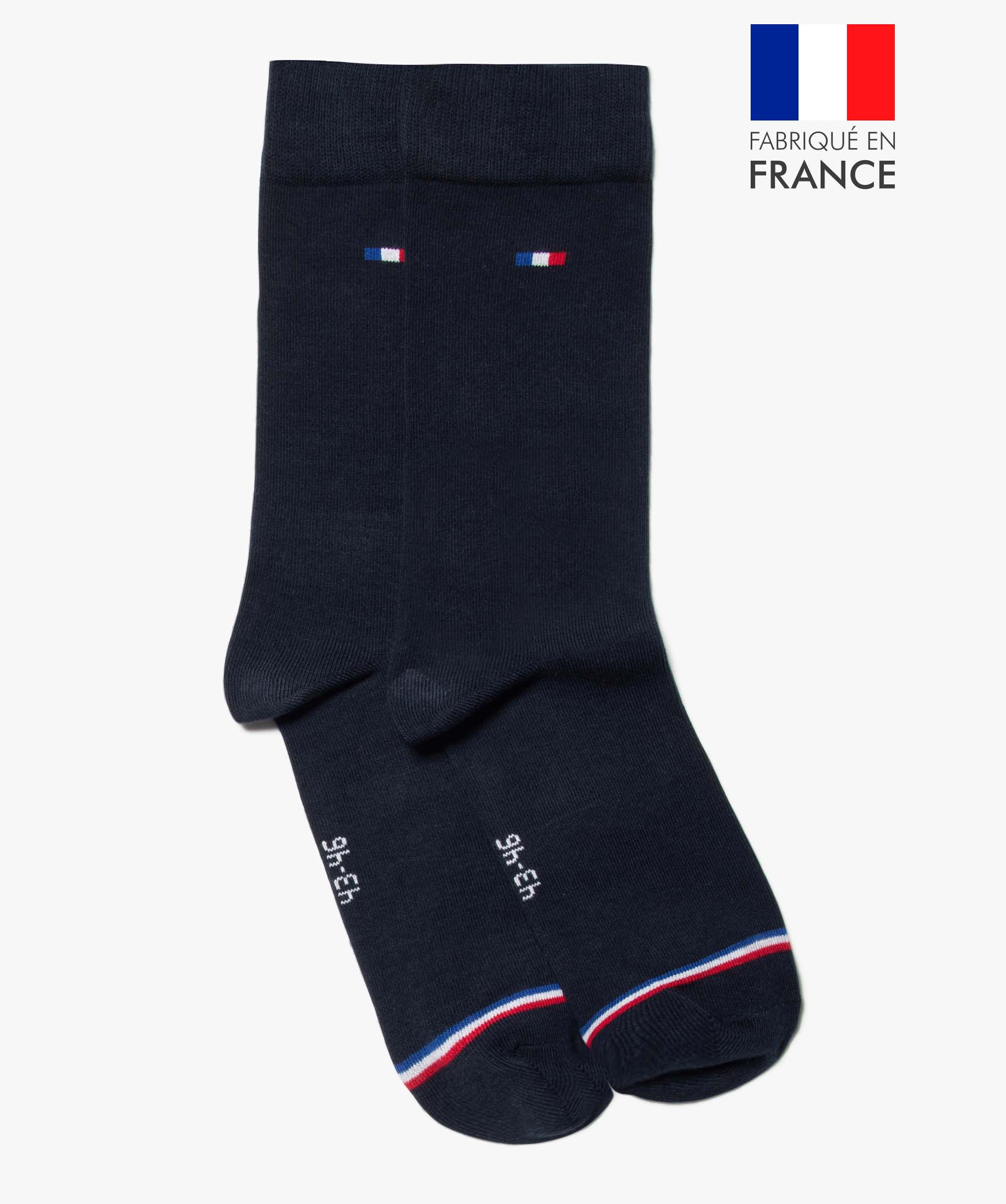 Signées La Chaussette , marque de fabrication 100% française, ces chaussettes sont tricotées de manière traditionnelle dans un coton fil d'Écosse de qualité. Des chaussettes pour homme au confort optimal dans vos sneakers comme dans vos derbies. . Talon et pointes renforcés. Bande tricolore à la pointe et petit drapeau français en haut de tige.