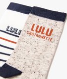 Ajoutez une discrète touche de style aux tenues des enfants grâce à ce lot de 2 paires de chaussettes LuluCastagnette. Des chaussettes mi-hautes confortables et faciles à porter dans la plupart des chaussures. Ce lot de chaussettes garçon se compose d’une paire rayée et d’une paire chinée, toutes deux ornées d’une inscription sur la tige. Haut de la tige en bord-côte élastiqué.