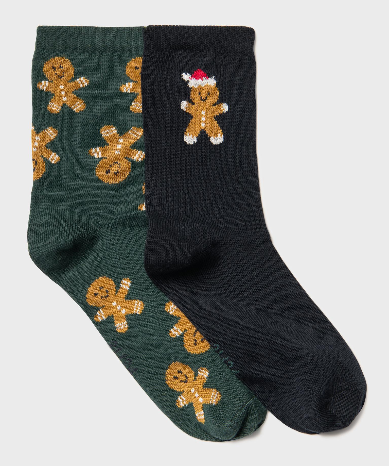 Chaussettes motifs bonhommes en pain d’épices garçon (lot de 2) vert fonce