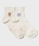 Adorable lot de 2 paires de chaussettes pour femme. Le lot comprend 2 paires de socquettes en maille côtelée extensible, rehaussée d'une finition roulottée en haut de tige. Les chaussettes sont décorées d'un cœur pailleté, de couleur différente sur chaque paire.