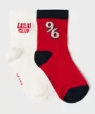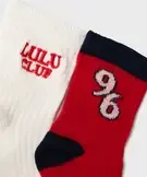 Lot de 2 paires de chaussettes bébé garçon LuluCastagnette, pensées pour varier les styles : une paire au motif sportswear plein d’énergie, et une autre ornée d’une broderie élégante pour un look plus habillé. La tige haute et la maille côtelée assurent un maintien doux et confortable tout au long de la journée. Une valeur sûre pour compléter les tenues des petits garçons avec style.