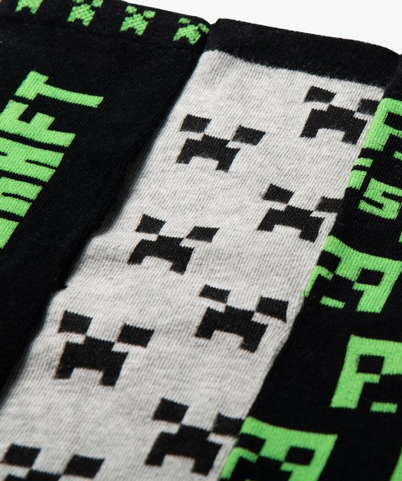 Chaussettes tige haute en coton imprimé garçon - Minecraft (lot de 3) vert fonce