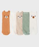 Ce lot de 5 paires de chaussettes bébé à tige haute est conçu majoritairement en coton biologique pour un confort naturel et respectueux de la peau. Le pack se compose de 5 coloris différents, dont 4 paires décorées d’une tête d’ours imprimée sur le côté avec de petites oreilles fantaisie en haut de tige, et une paire unie plus classique. Douces, extensibles et bien couvrantes, ces chaussettes maintiennent les petits pieds au chaud tout en apportant une touche ludique et attendrissante.