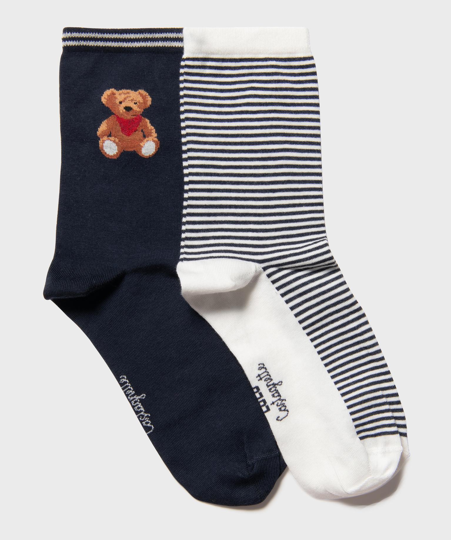 Chaussettes tige haute fantaisie femme - LuluCastagnette (lot de 2 paires) marine