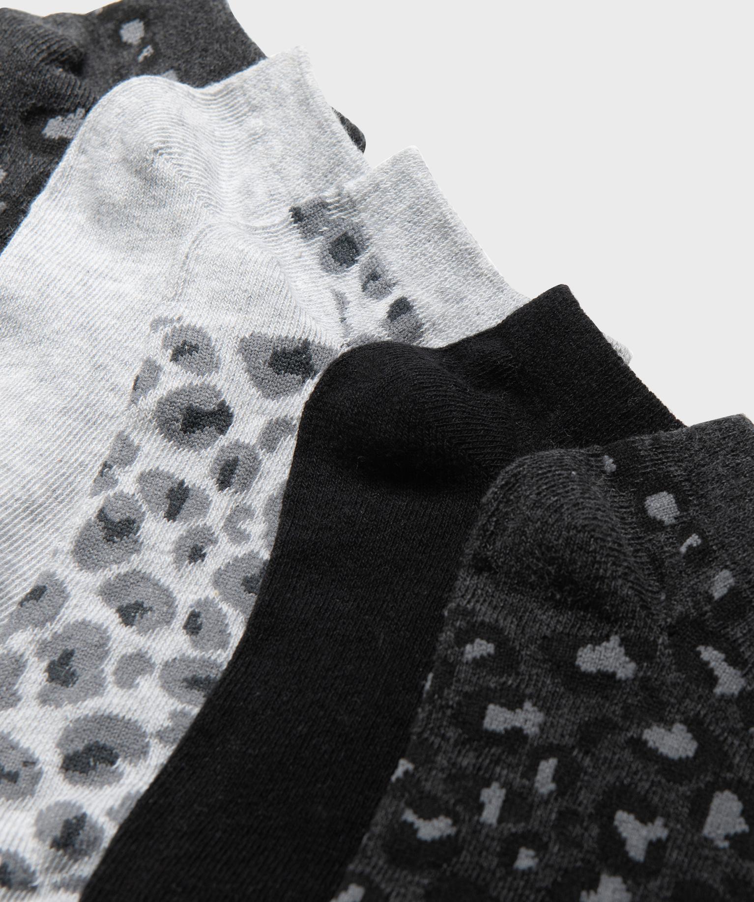 Chaussettes ultra courtes à motif léopard femme (lot de 5) gris
