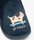 Pour un confort maximum, ces chaussons pour bébé garçon adoptent la forme bottillons. Grâce à la coupe semi-montante et un talon renforcé, les petits pieds de bébé sont maintenus en toute sécurité. On aime le zip pour fermeture, facile à manipuler et pratique pour développer l'autonomie de bébé. Sur l'avant, un chien rigolo et le message "ça roule!" décorent joliment ces chaussons bébé.
