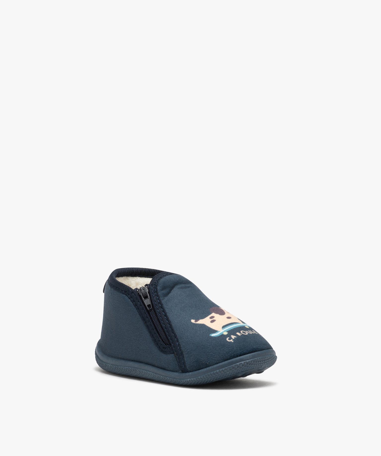Chaussons bébé garçon bottillons à zip en jersey imprimés bleu