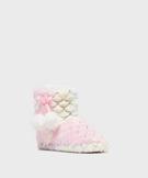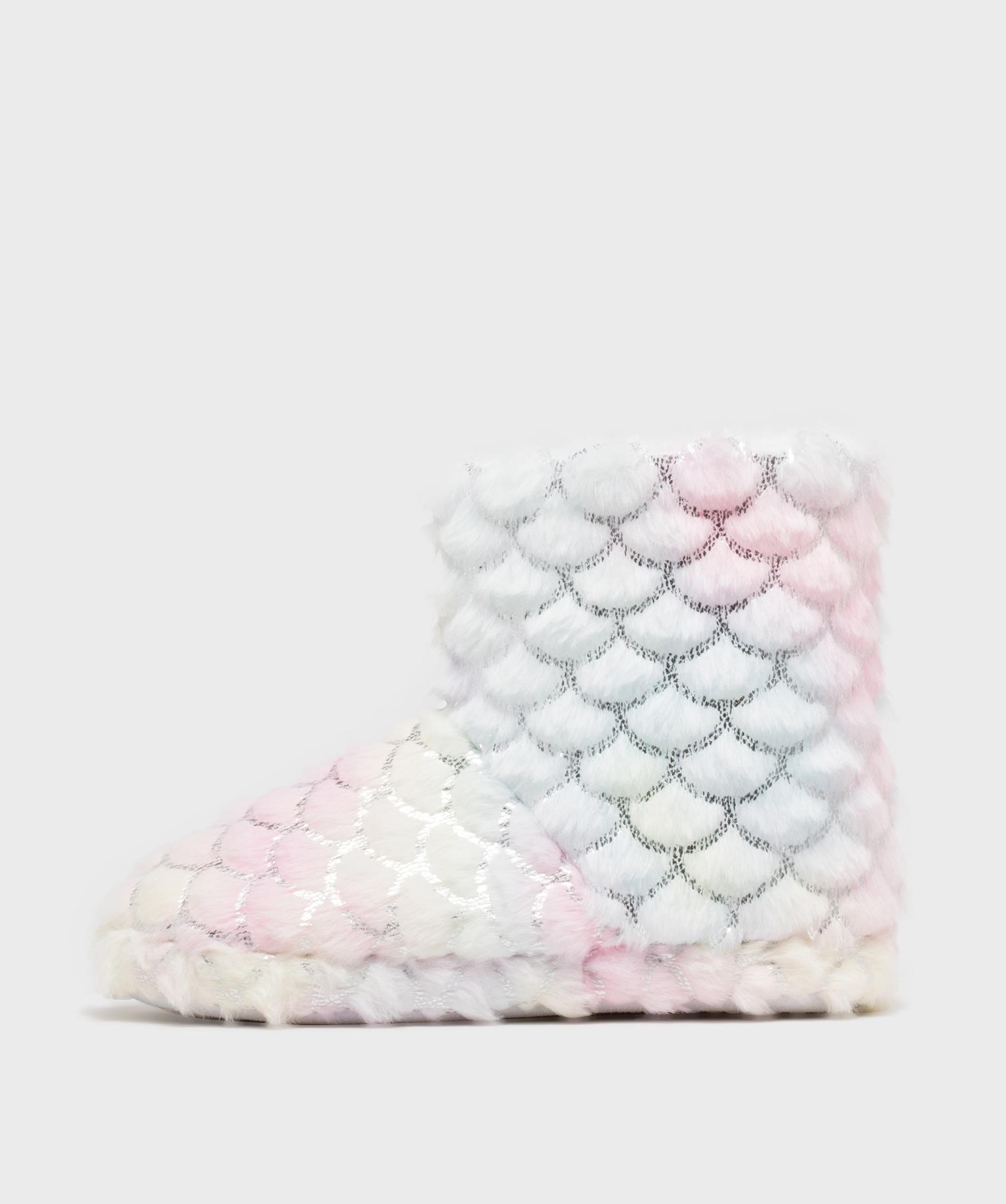 Ces adorables chaussons boots envelopperont les pieds de chaleur et de douceur grâce à leur confection en fourrure imitation aux couleurs acidulées. Ils sont rehaussés de motifs pailletés en forme d’écailles qui illuminent l’ensemble. Ces chaussons pour fille se distinguent également par leur petit noeud satiné avec pompons sur le côté de la tige. Des chaussons aussi doux à l’intérieur qu’à l’extérieur que les filles ne voudront plus quitter.