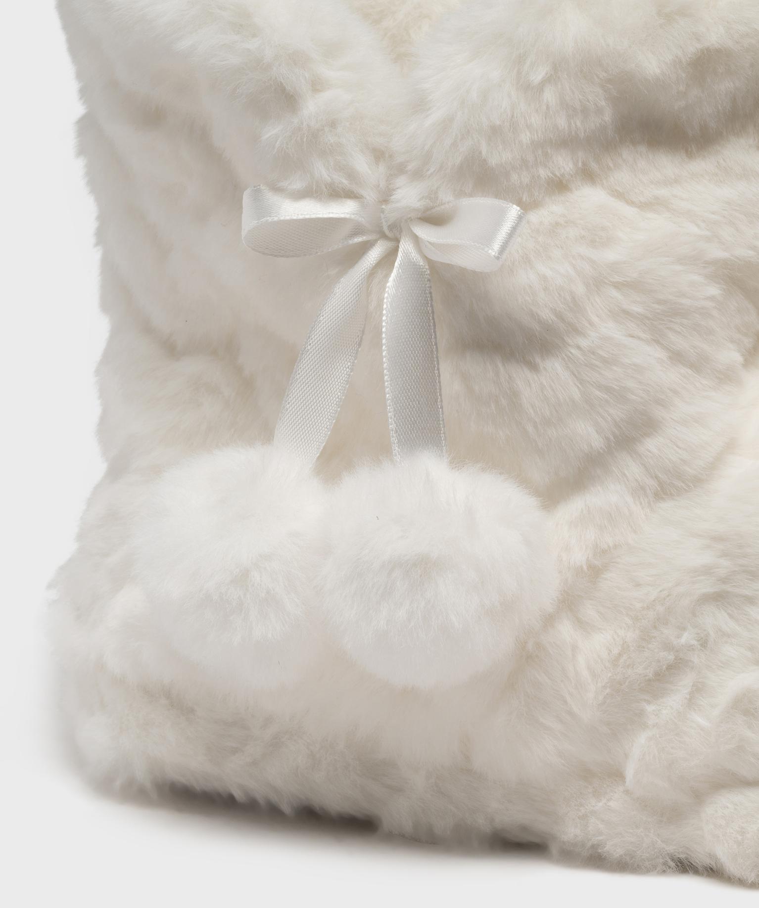 Chaussons boots en fourrure imitation à pompons femme blanc