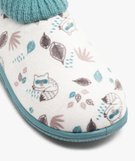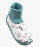 Offrez à votre petit garçon le confort et la chaleur de chaussons bottes. Ces chaussons montants sont dotés d'une tige en maille côtelée, souple comme celle d'une épaisse chaussette douillette. Le dessus du chausson est en velours ras, parsemé de petits motifs feuilles et animaux. Ces chaussons bébé garçon enveloppent parfaitement le pied et s'enfilent aisément grâce au col en bord-côte et à la petite tirette sur le contrefort. Ils possèdent une semelle très souple et antidérapante. Des chaussons à porter avec un pyjama en velours douillet ou une combinaison en maille peluche.
