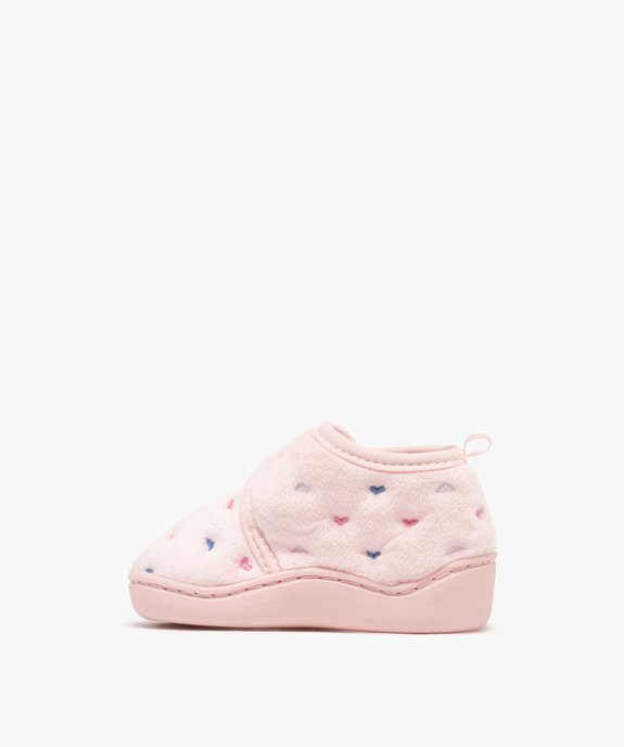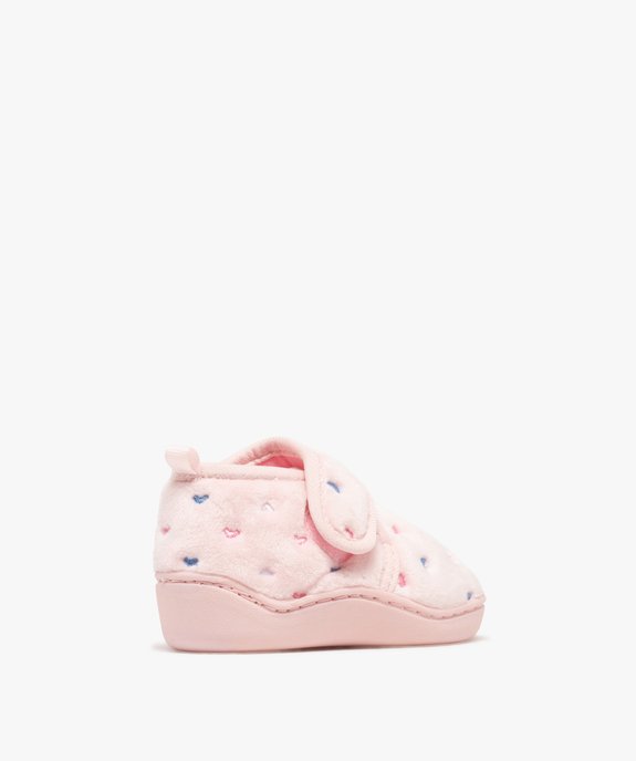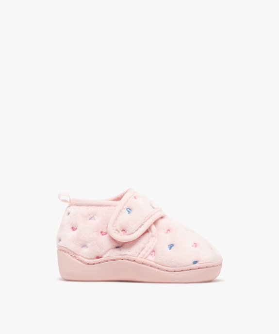 Chaussons bottillons en velours avec motifs coeurs brodés bébé fille rose