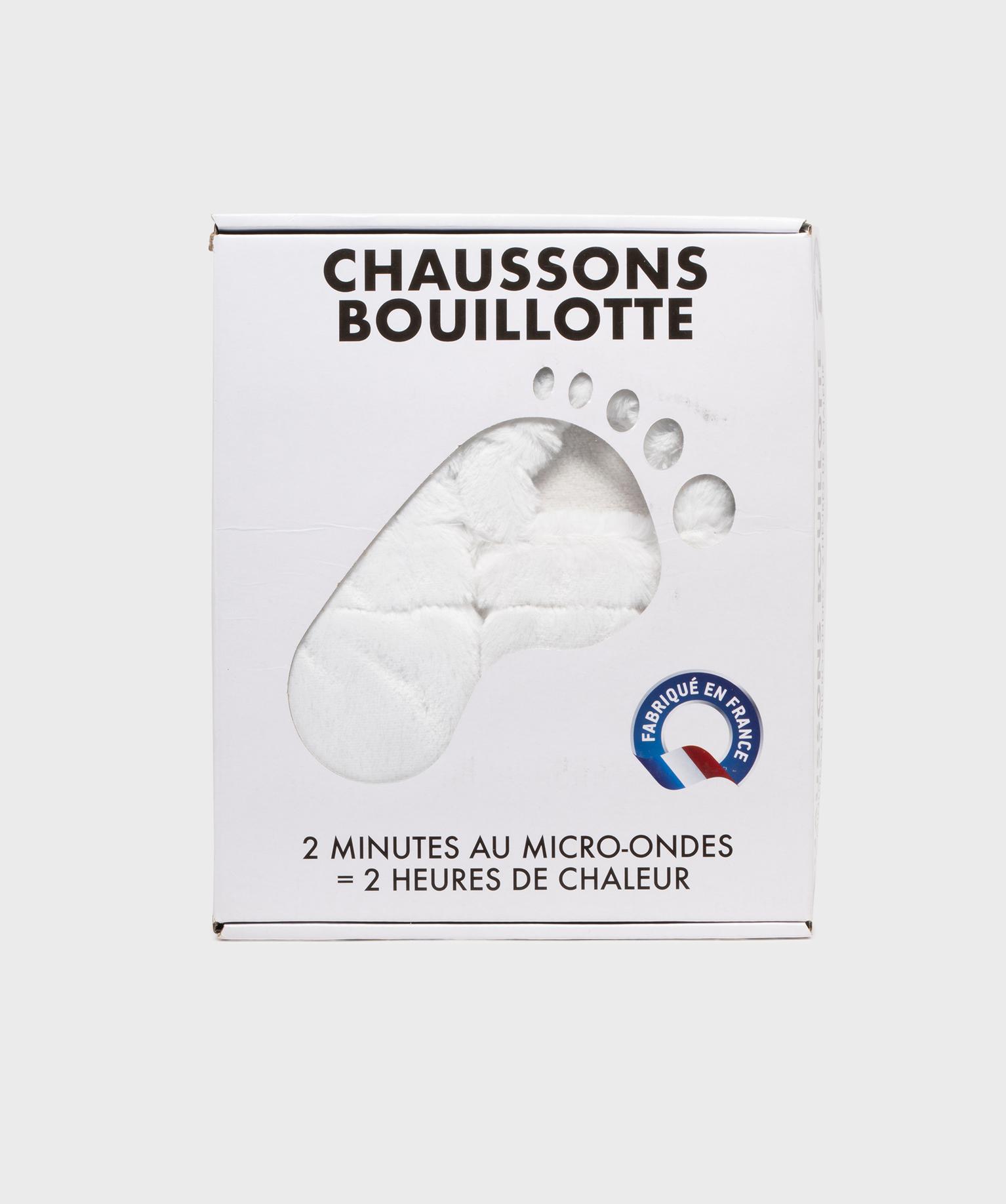 Chaussons bouillotte à chauffer au micro-ondes blanc