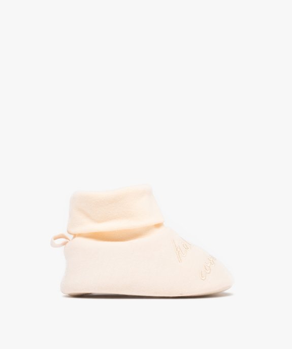 Ces chaussons pour bébé affichent un look boots (ou chaussettes) à croquer ! Ils sont ultra moelleux afin que les pieds de bébé restent au chaud et à leur aise ! La tige montante affiche un revers et le dessus des chaussons pour bébé fille est décoré d'une délicate broderie ton sur ton. À porter avec toutes les tenues et les pyjamas.