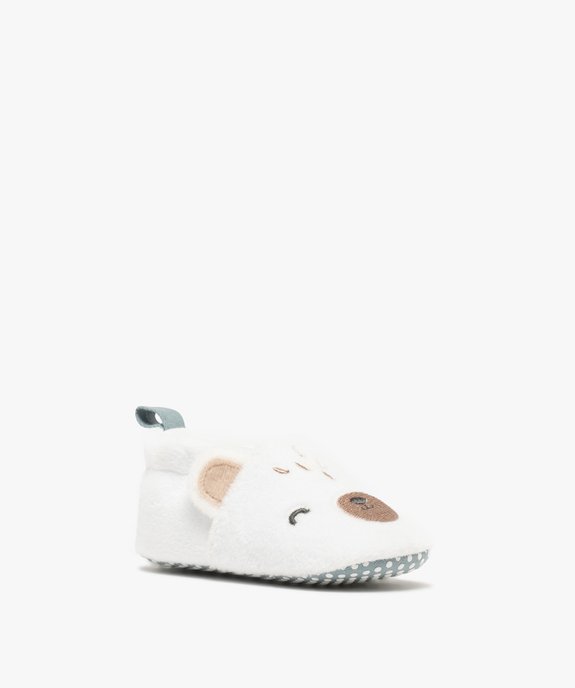 Chaussons de naissance en velours motif ours bébé garçon blanc