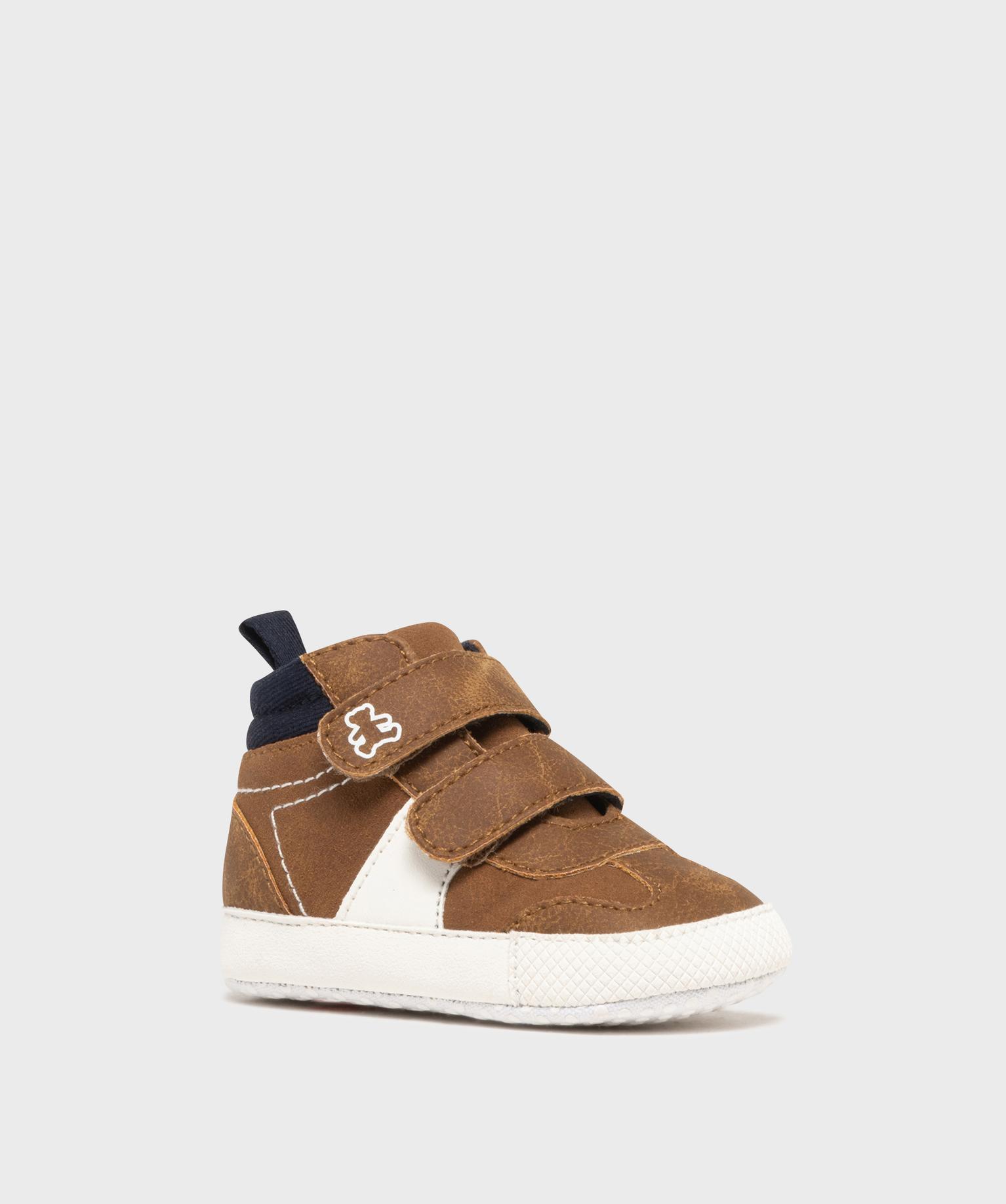 Chaussons de naissance look boots à scratch bébé - LuluCastagnette marron