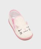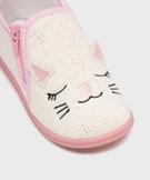 Chaussons en velours à paillettes et tête de chat brodée fille ecru