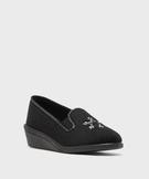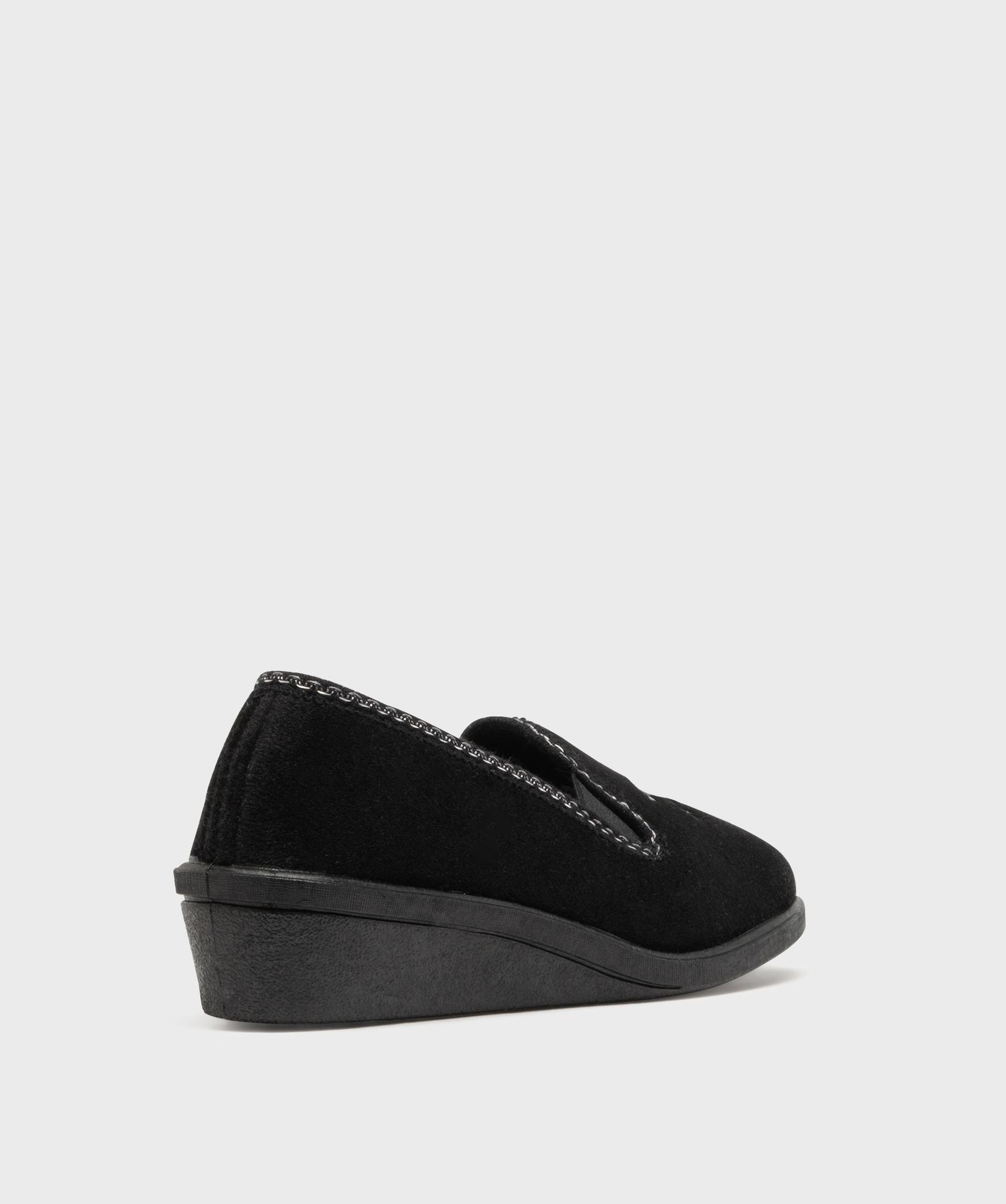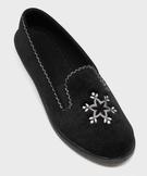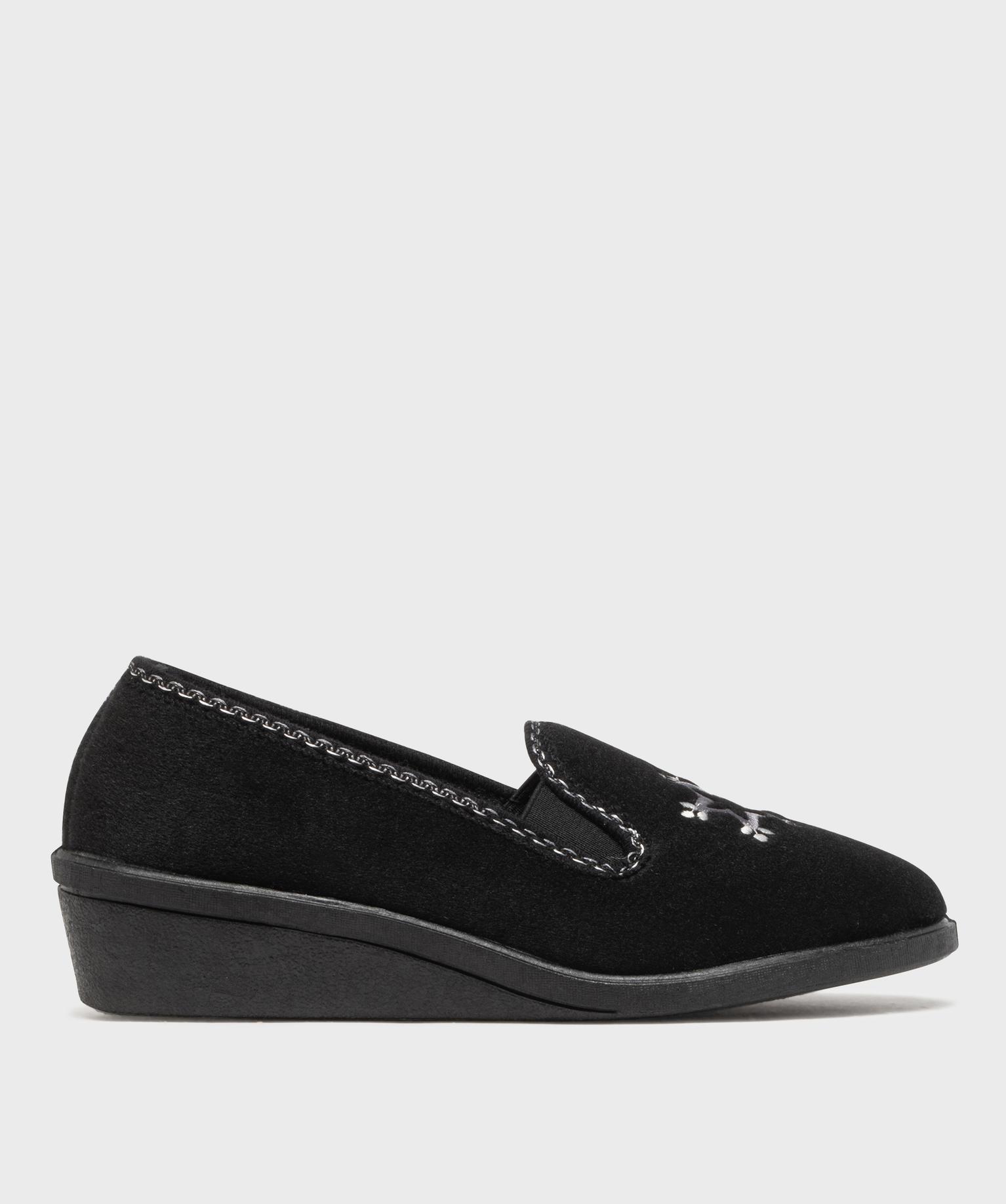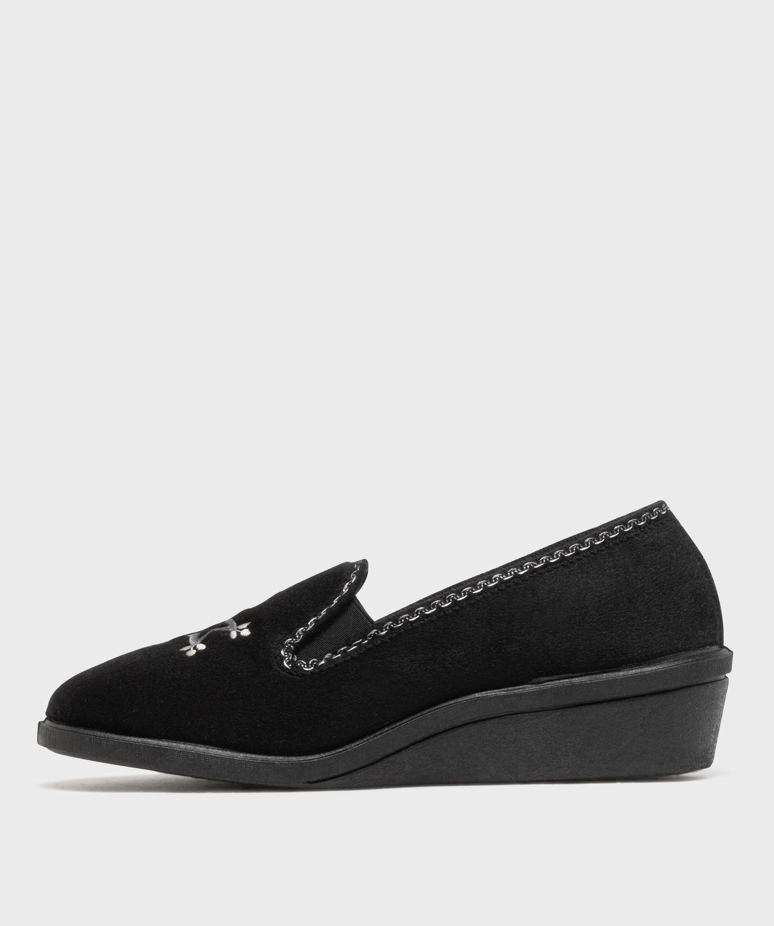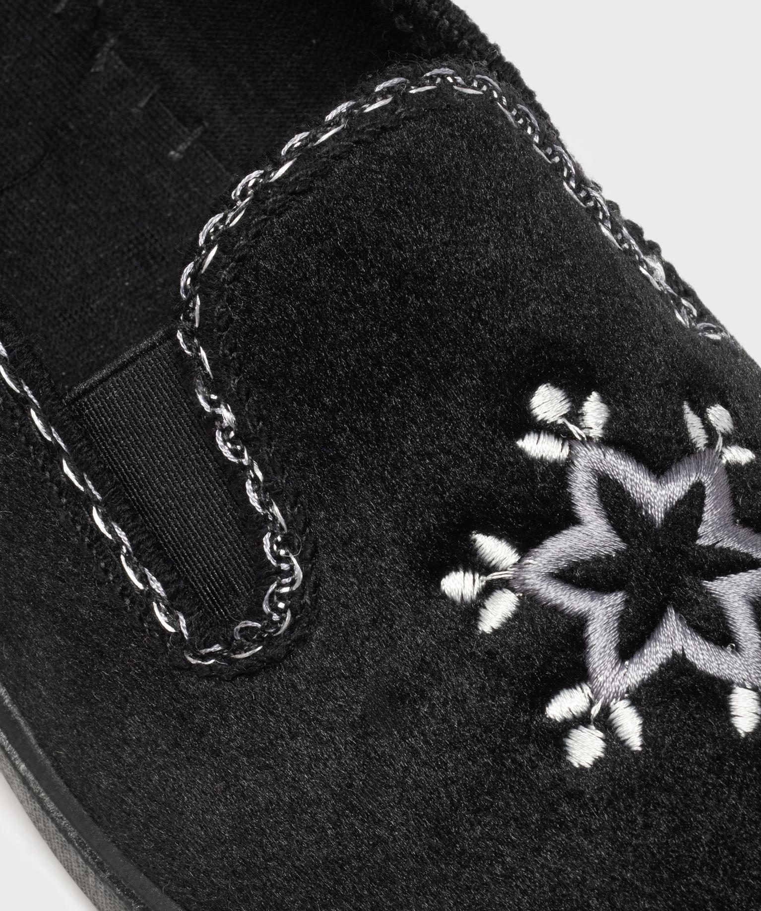 Chaussons enveloppants dessus velours motif fleur femme noir