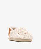 Chaussons enveloppants en sherpa avec broderie scintillante femme beige clair