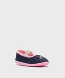 Chaussons enveloppants en velours avec motif pailleté fille bleu fonce