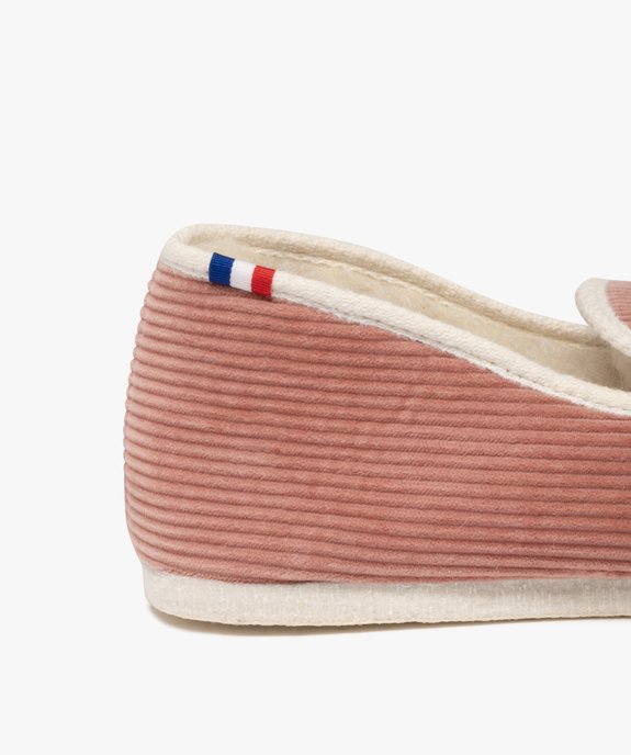 Vous allez adorer glisser vos pieds dans ces chaussons pour femme entièrement doublés de laine. Des chaussons inspirés des charentaises, qui remontent bien haut au niveau du talon. Le dessus en velours côtelé et le liseré contrastant sur le col assurent une allure à la fois réconfortante et féminine. Des chaussons fabriqués en France, posés sur une semelle légère et antidérapante. Idéal pour un cadeau responsable pour les fêtes de fin d’année !
