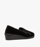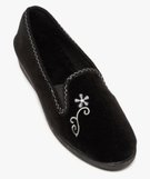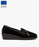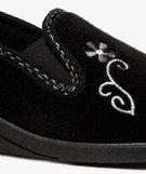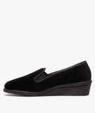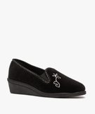 Chaussons femme à talon compensé et dessus brodé noir
