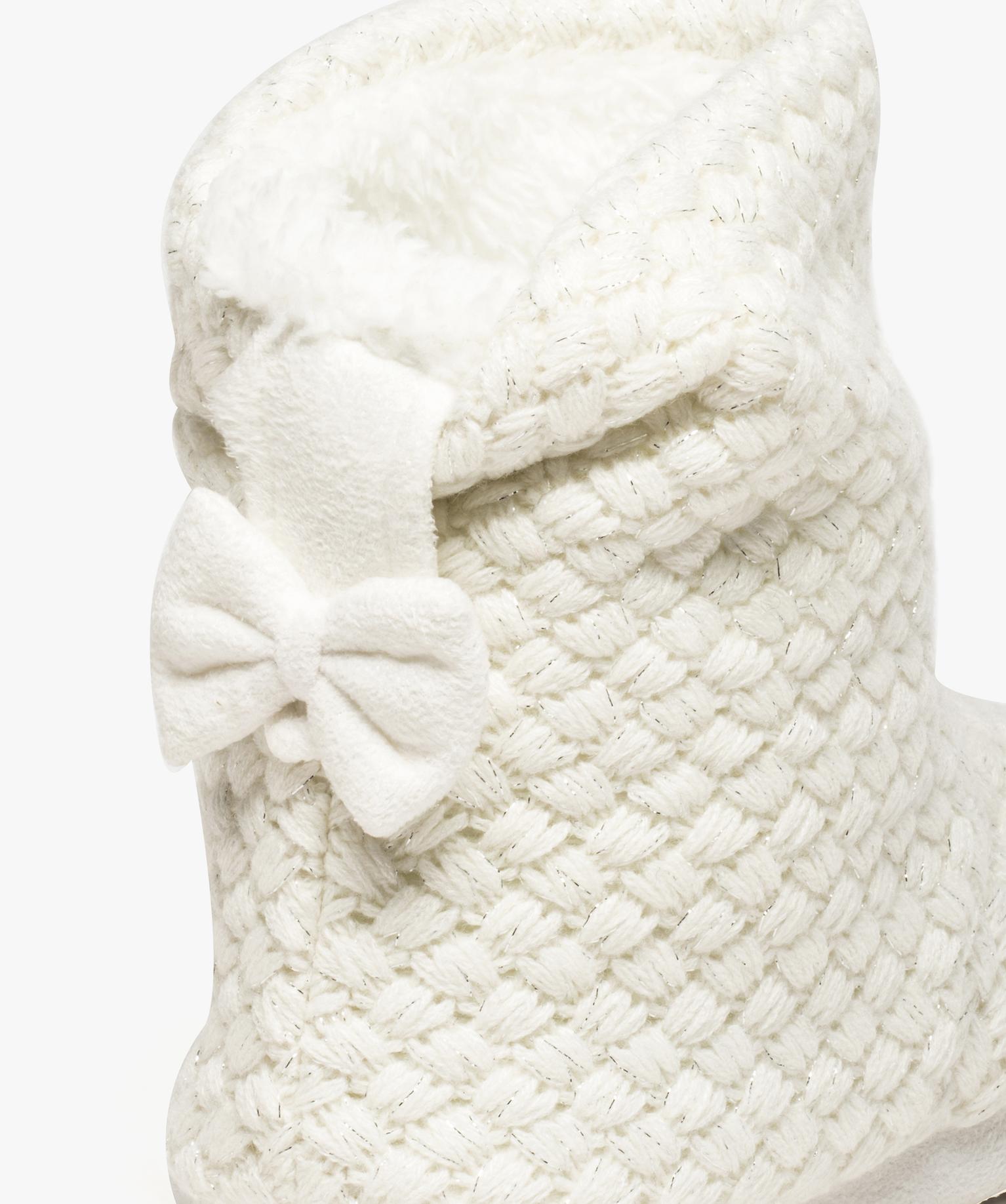 Chaussons femme boots en maille avec nœud à l’arrière blanc