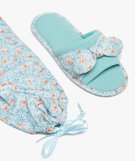 Chaussons femme en jersey imprimé avec sac assorti bleu